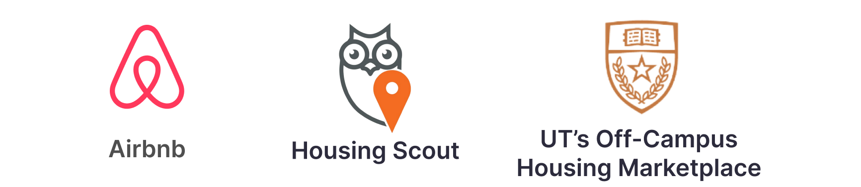 Airbnb was analyzed even though it is not catered towards a college student since it is one of the most formidable websites for users to find temporary housing in the market today. The next two are UT Specific.